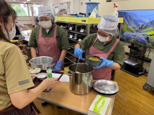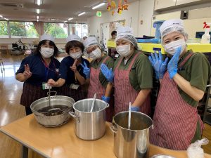 職員も自作の帽子をかぶり、店員さんになりきって給仕しました(^o^)♪