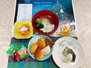12月のイベント食は、デイケアをご利用の皆さまに特別な食事を楽しんでいただきたく、フレンチのフルコースをイメージしたお食事を提供しました。
