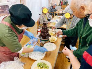デイケアでは皆様お待ちかねの「チョコレートフォンデュ♡レク」を開催いたしました!!