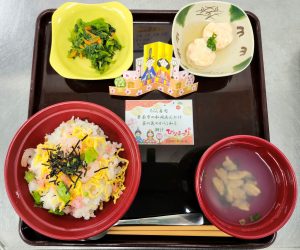当施設でも皆様の健やかな毎日を願い、ひなまつりの行事食をご用意しました。