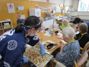 お昼は、栄養課によるイベント特別食「ワイワイ縁日メニュー」。
