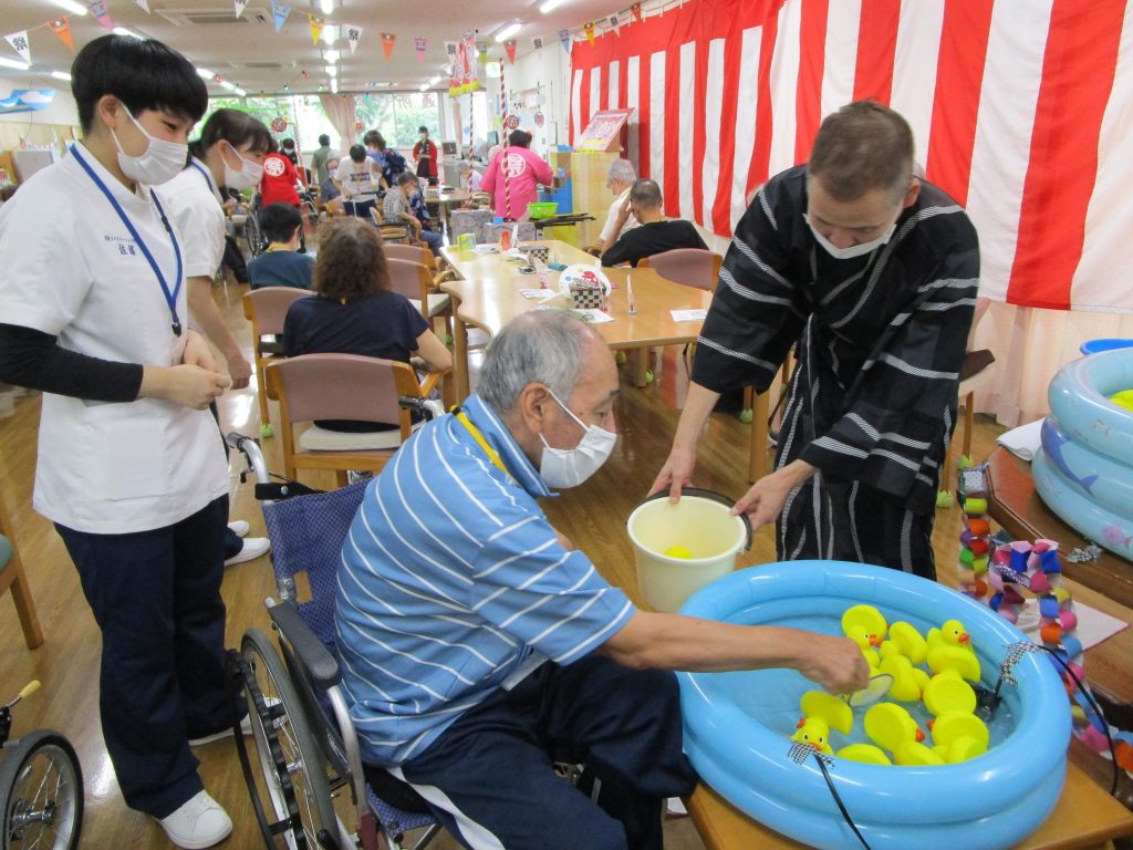 縁日コーナーでは、「射的」「輪投げ」「アヒルすくい」など、夏らしい遊びが盛りだくさん!
