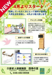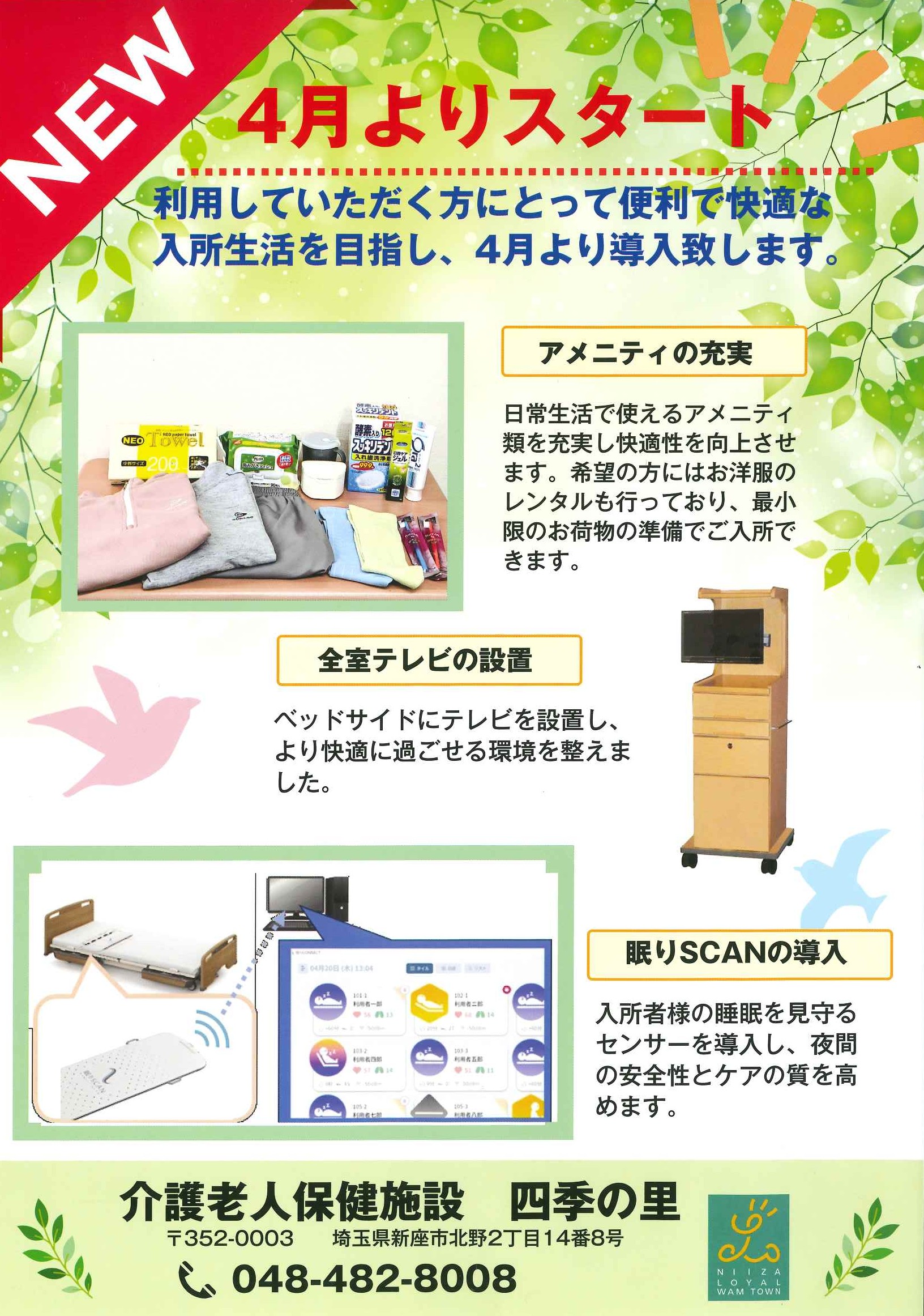 すでにご案内している内容もございますが、4月より、皆さまにこれまで以上に快適で安心してお過ごしいただける環境をご提供できるよう、サービスを拡充いたします。これからご利用を検討されている方にも、当施設の取り組みをあらためてご紹介いたします。