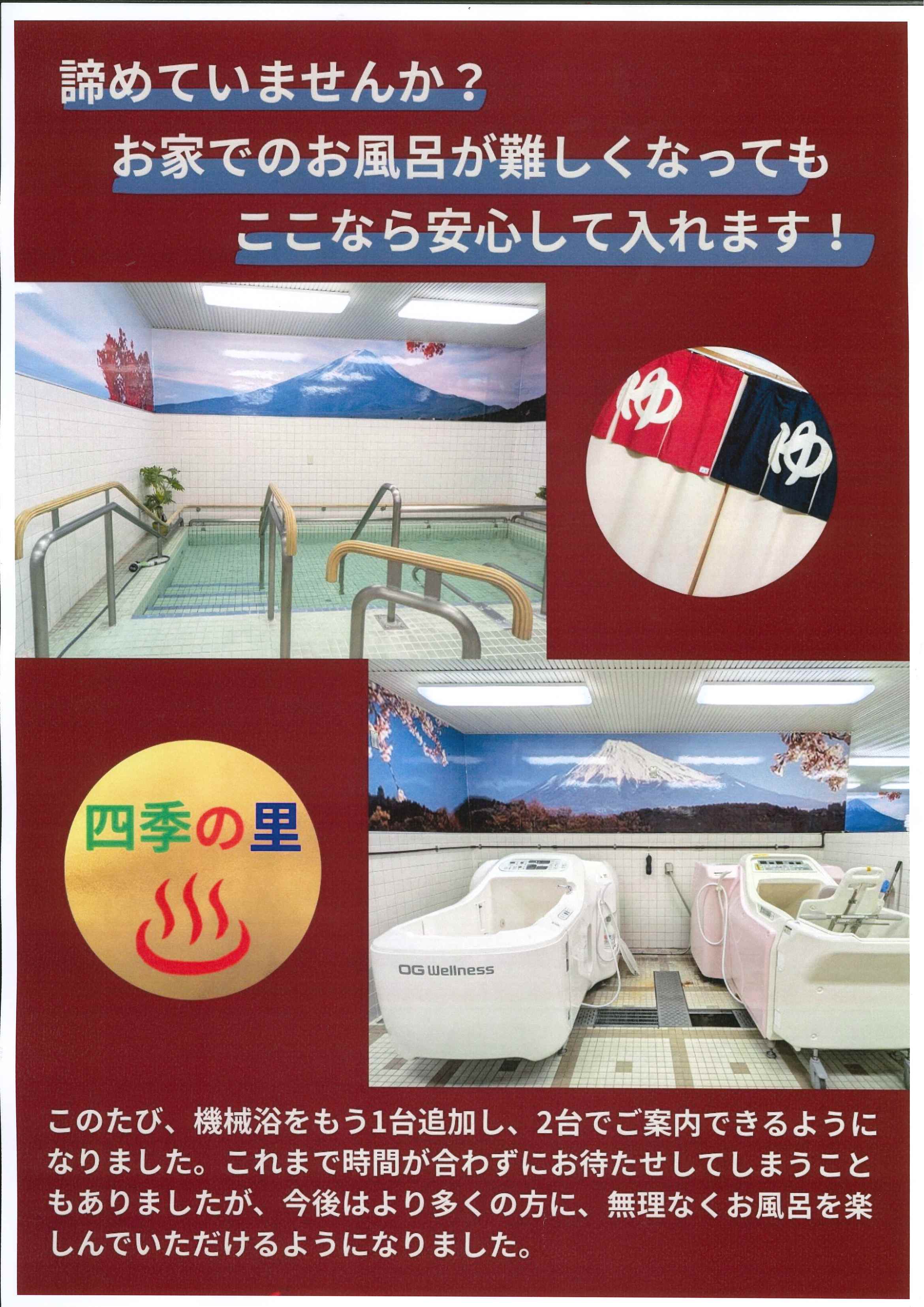 この度、機械浴(チェアインバス)をもう1台追加し、